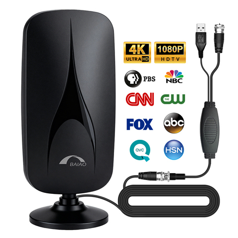 Бесплатная 4-каратная антенна UHD для дальнего приема, поддерживает Смарт-и старые телевизоры 1080P HD VHF UHF